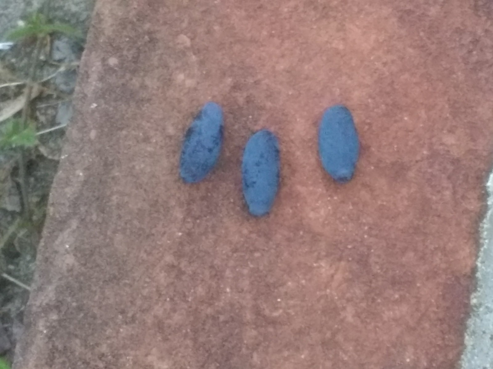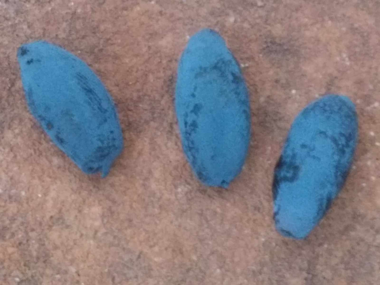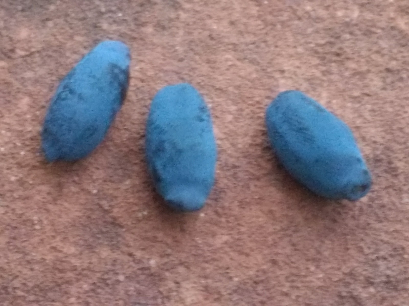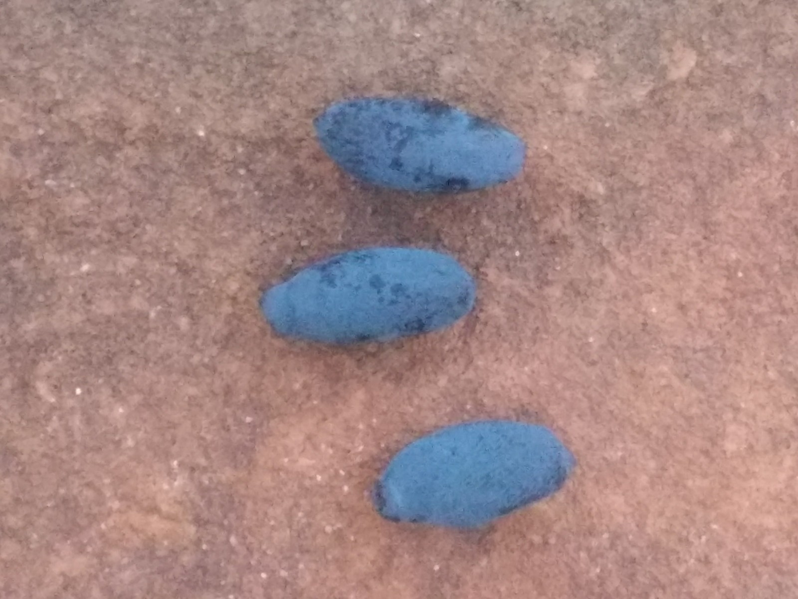 Three days after snow and the final freeze (hopefully, 28 F), the first blue honeysuckle berry is picked ripe with the gel texture of a grape and the flavor of a mild wild blueberry. This berry was probably ripe days ago but overlooked on the little bush. Blue Diamond variety.