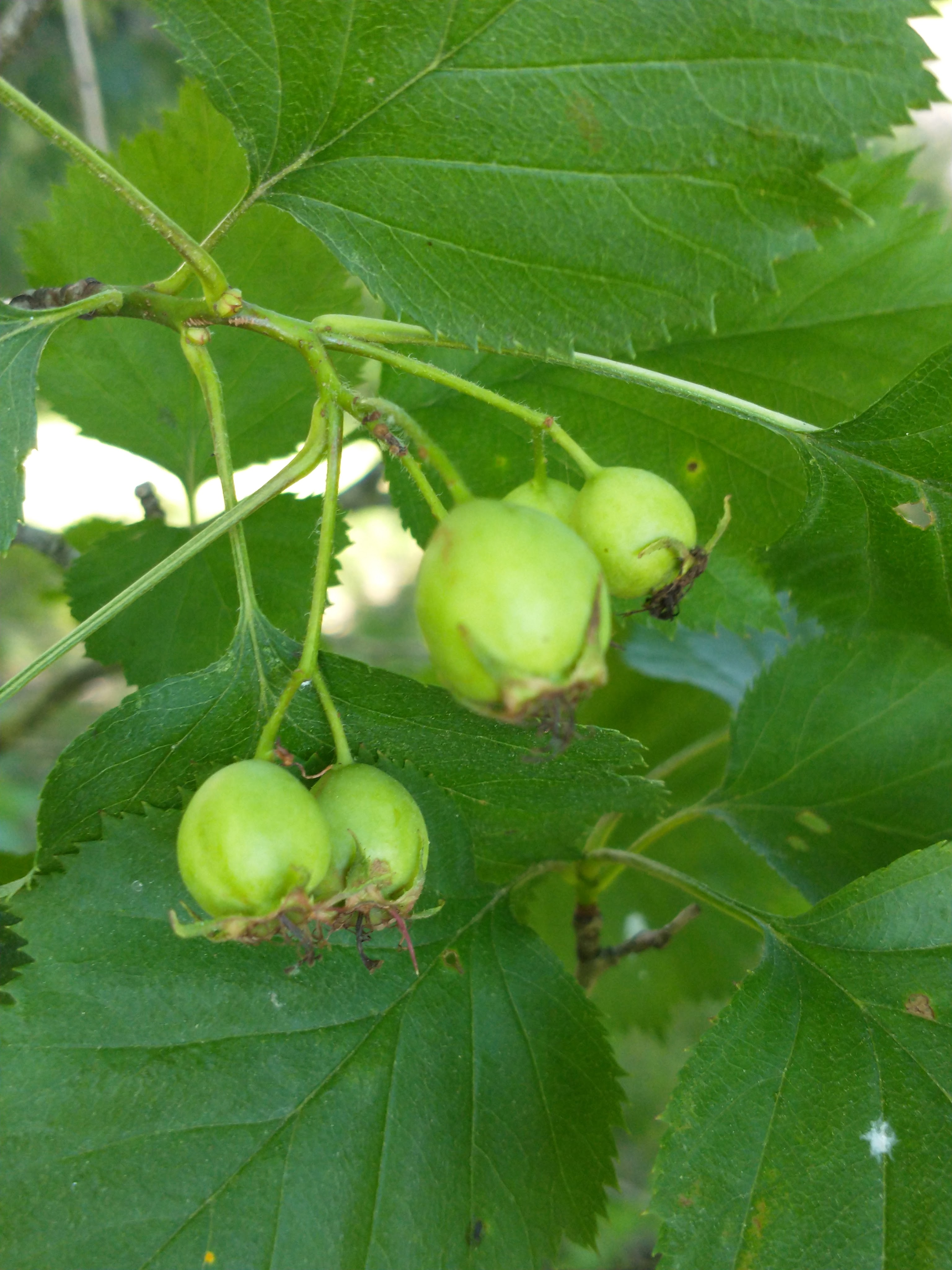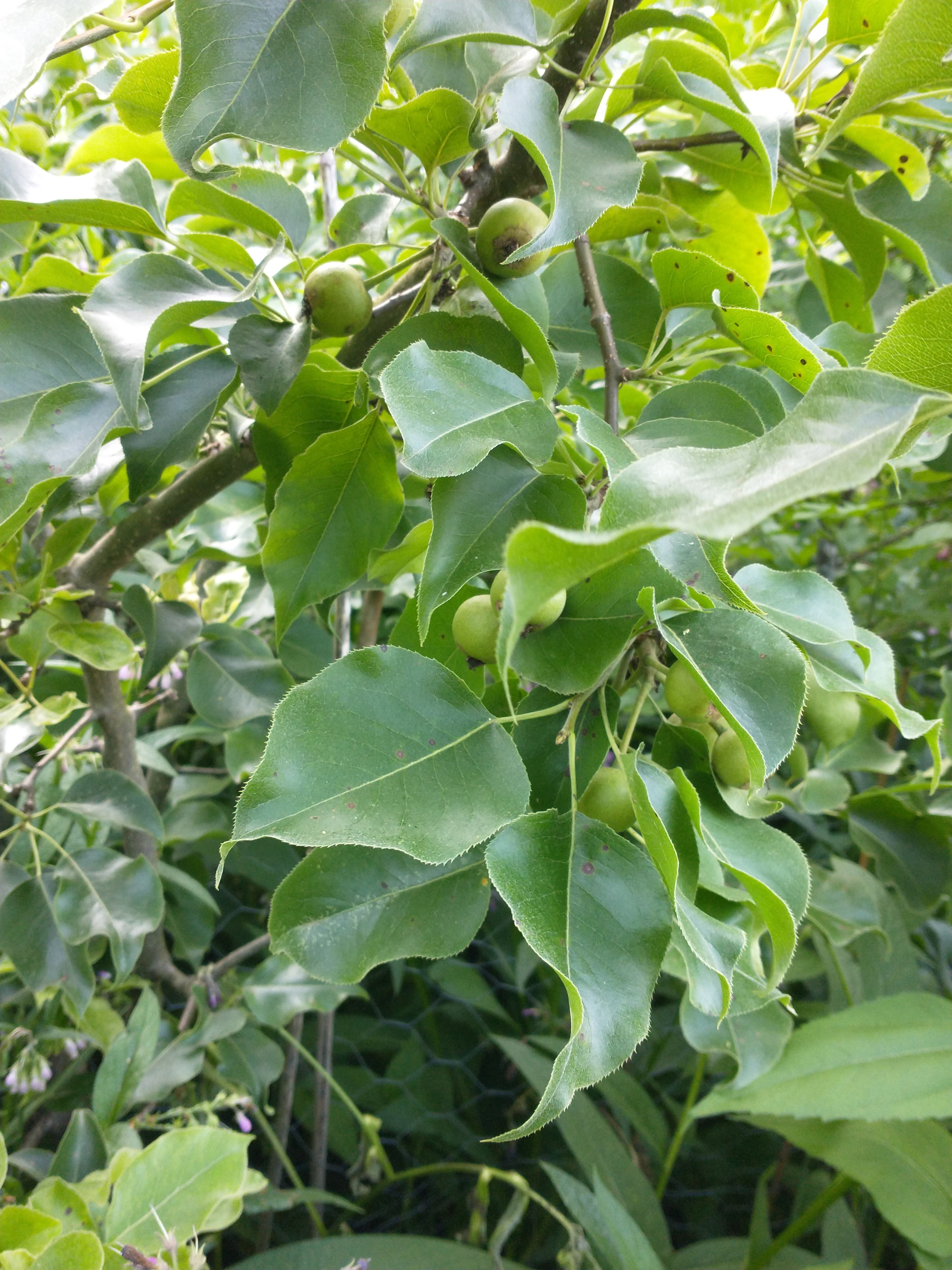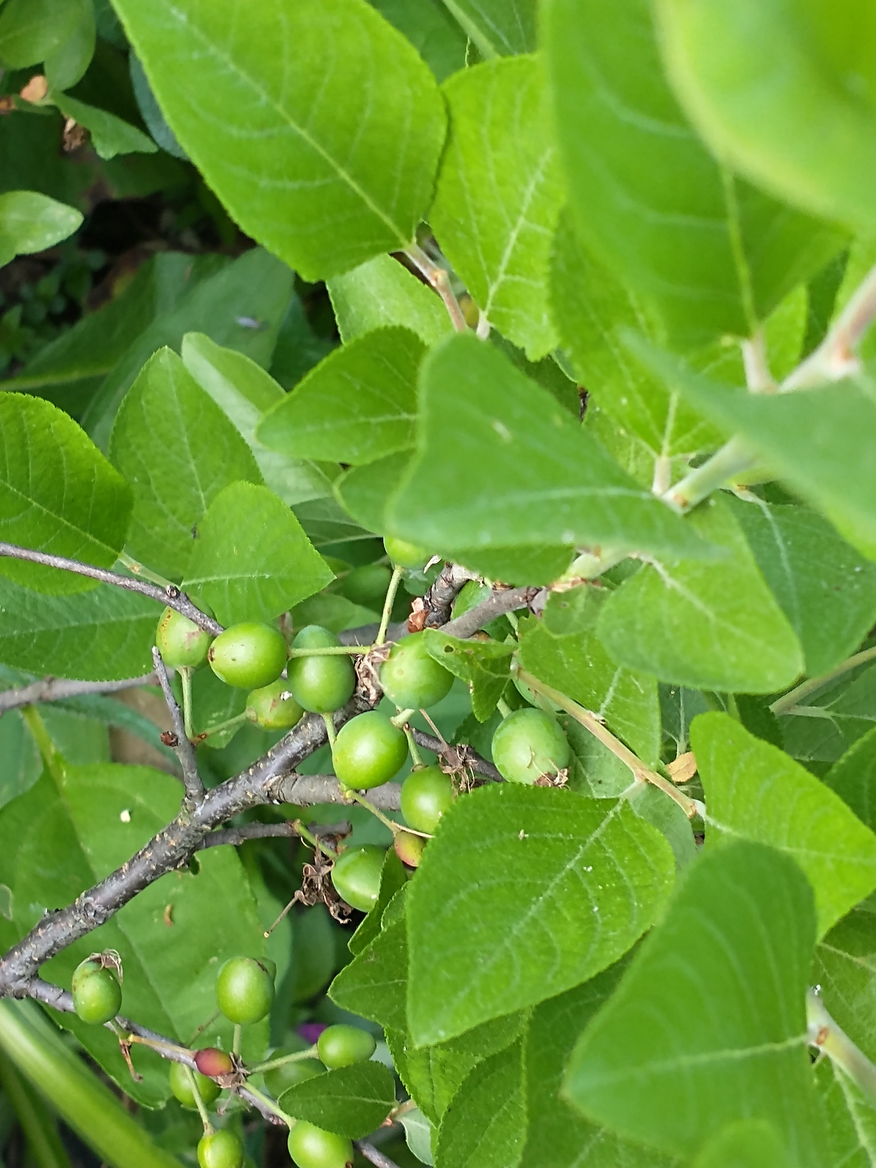 Apart from the already ripe or ripening perennial fruits of blue honeysuckle, goumi, and juneberry, followed by various cherries and goji (discussed and shown in the previous post), other fruits continue their development. Northcentral West Virginia, growing zone 6, elevation 1000 feet, east slope, photos below show the current unripe progress of peach, plum (Asian, European, & American), apple, Asian pear, medlar, crabapple, hawthorn, barberry, blackberry, blueberry, autumnberry, flying dragon orange, aronia, wild black cherry, wild grape, domestic grape, elderberry, persimmon, and pawpaw. Apricot and quince dropped blossoms, did not set fruit. Elderberry and persimmon both just now beginning to open blossoms.