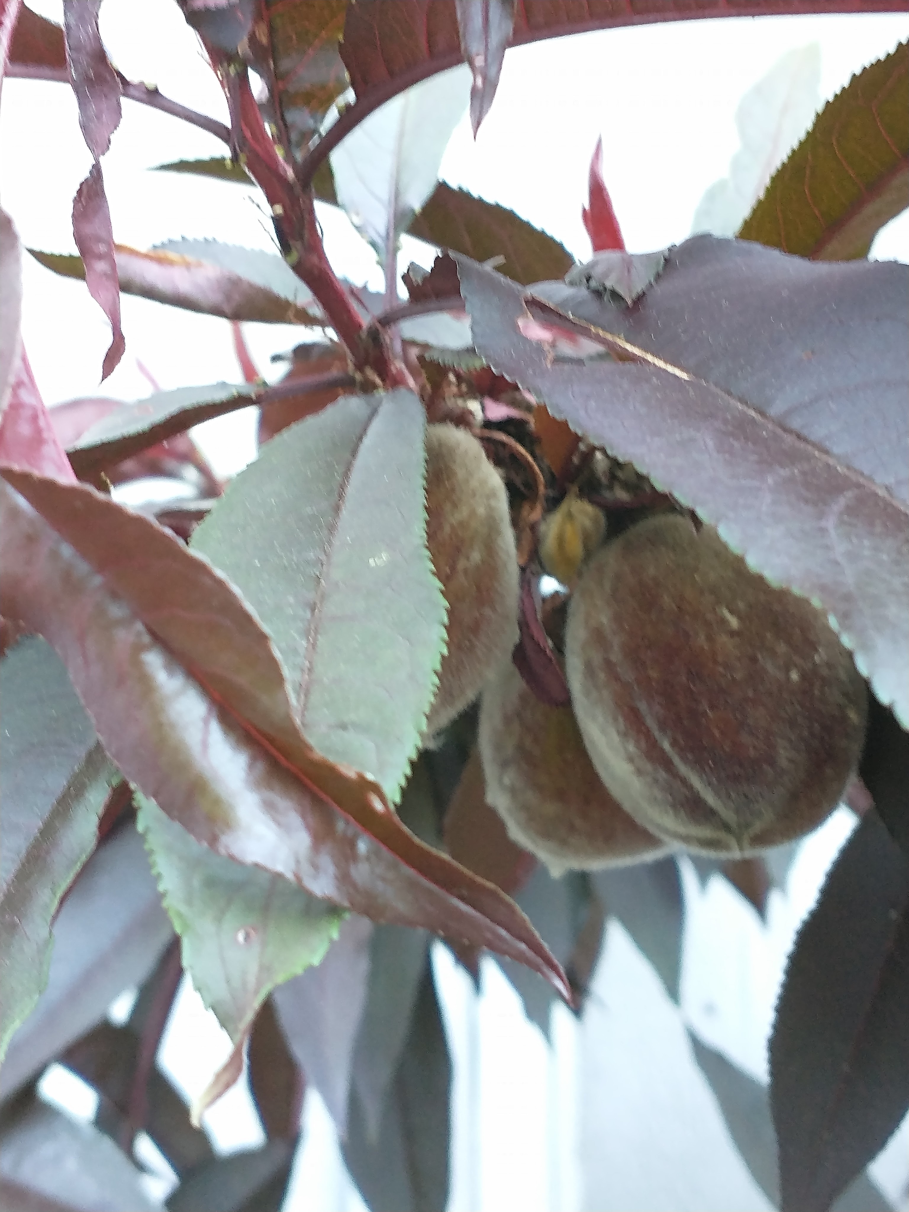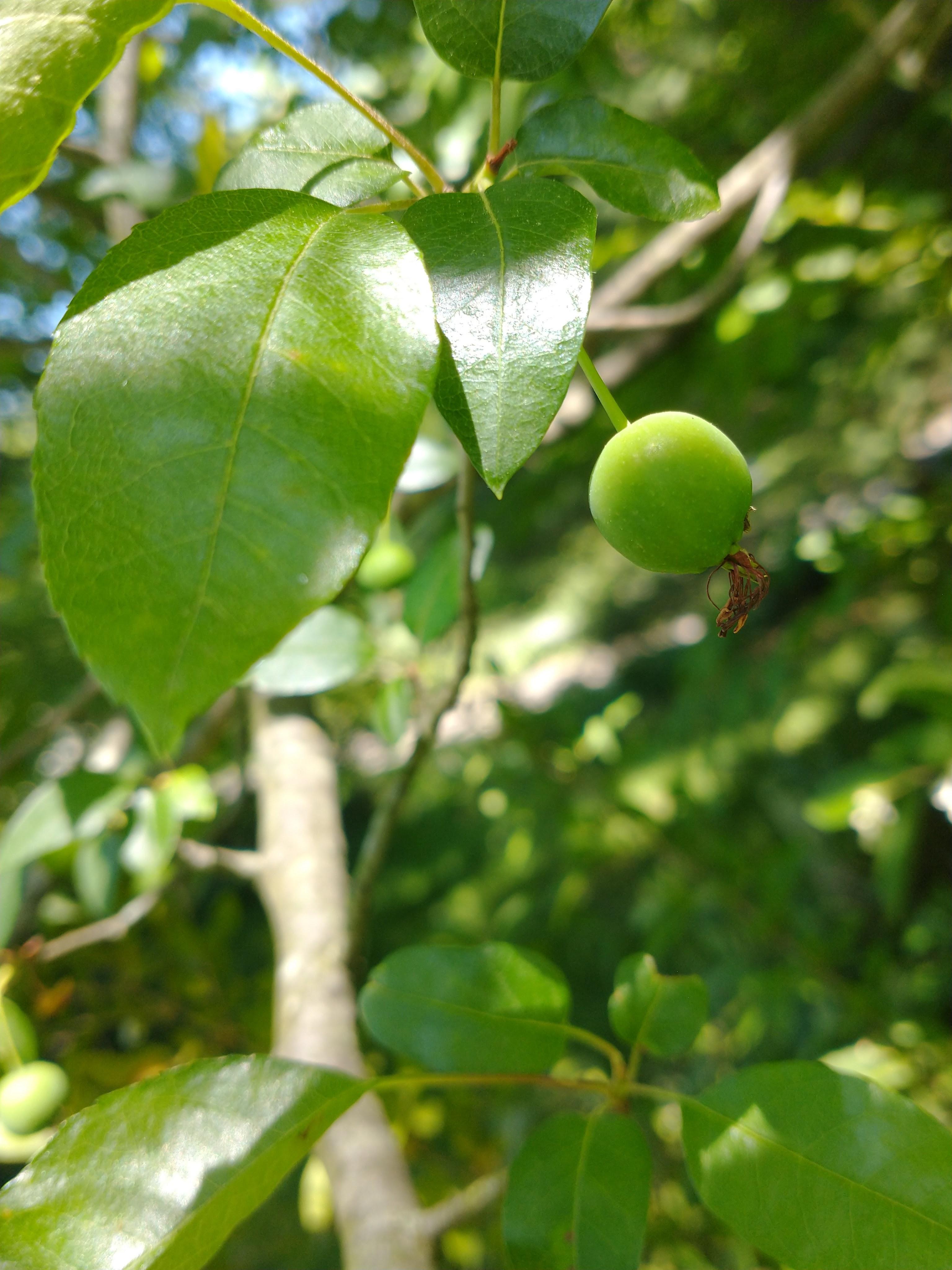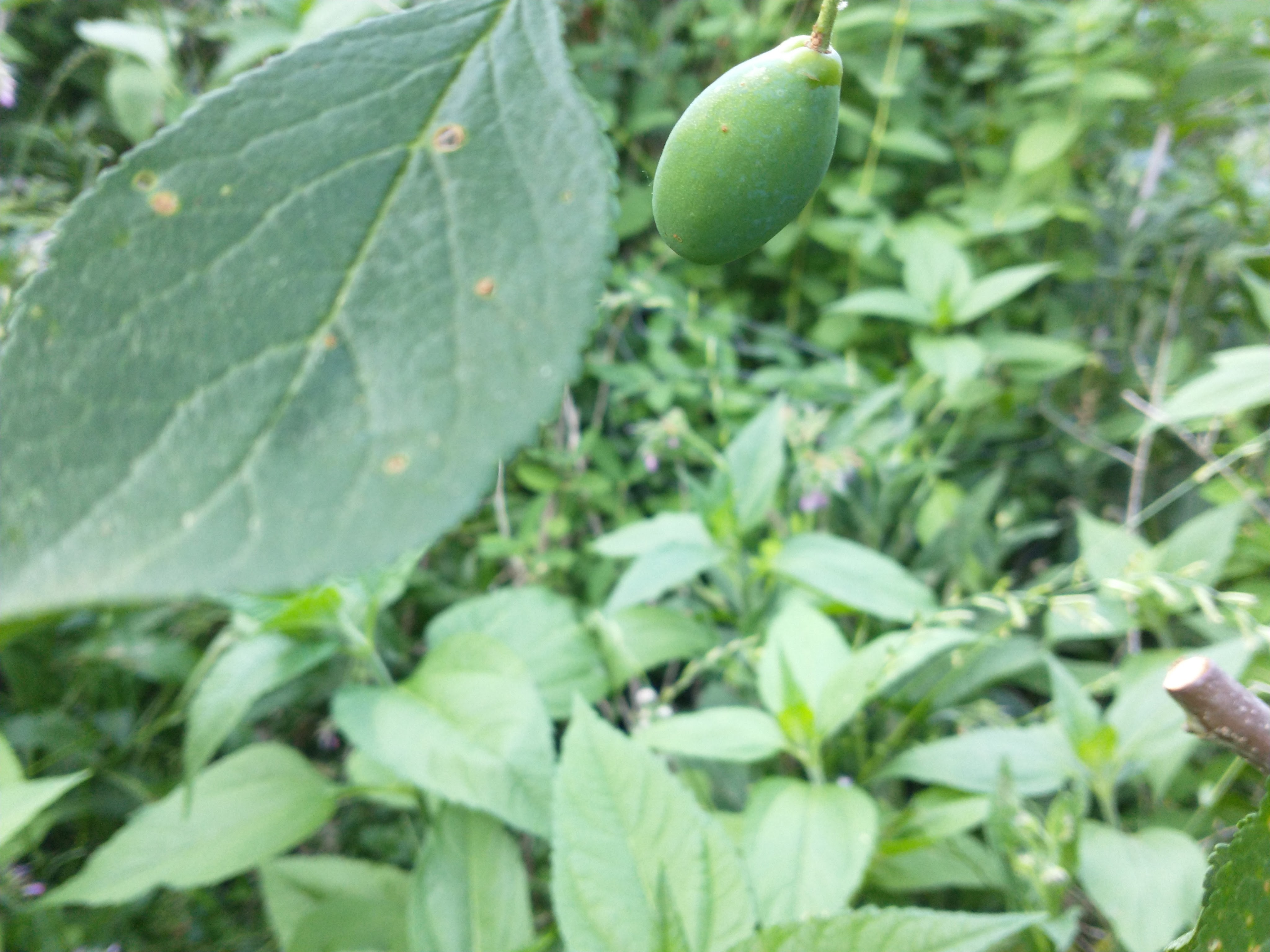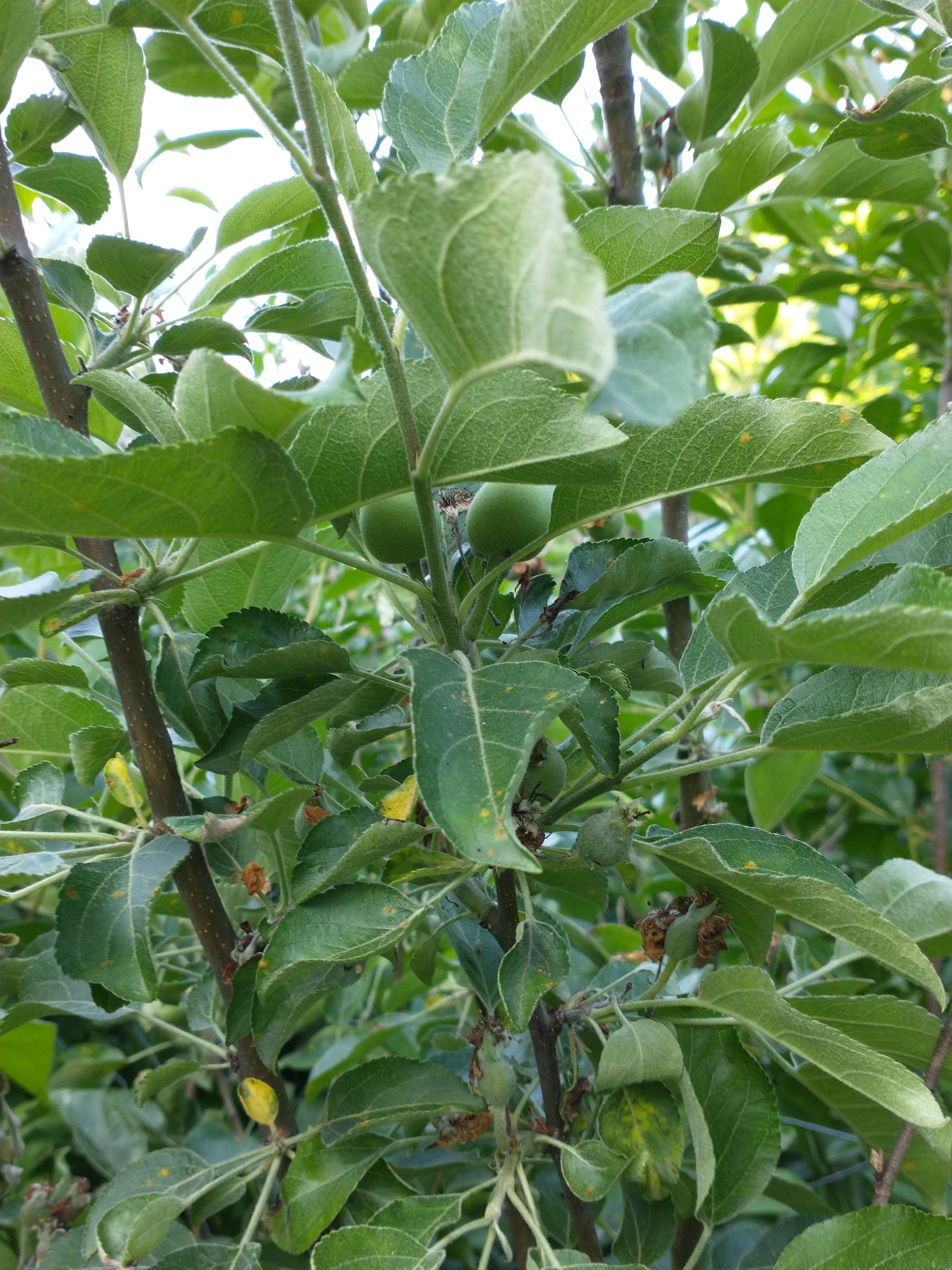 Apart from the already ripe or ripening perennial fruits of blue honeysuckle, goumi, and juneberry, followed by various cherries and goji (discussed and shown in the previous post), other fruits continue their development. Northcentral West Virginia, growing zone 6, elevation 1000 feet, east slope, photos below show the current unripe progress of peach, plum (Asian, European, & American), apple, Asian pear, medlar, crabapple, hawthorn, barberry, blackberry, blueberry, autumnberry, flying dragon orange, aronia, wild black cherry, wild grape, domestic grape, elderberry, persimmon, and pawpaw. Apricot and quince dropped blossoms, did not set fruit. Elderberry and persimmon both just now beginning to open blossoms.