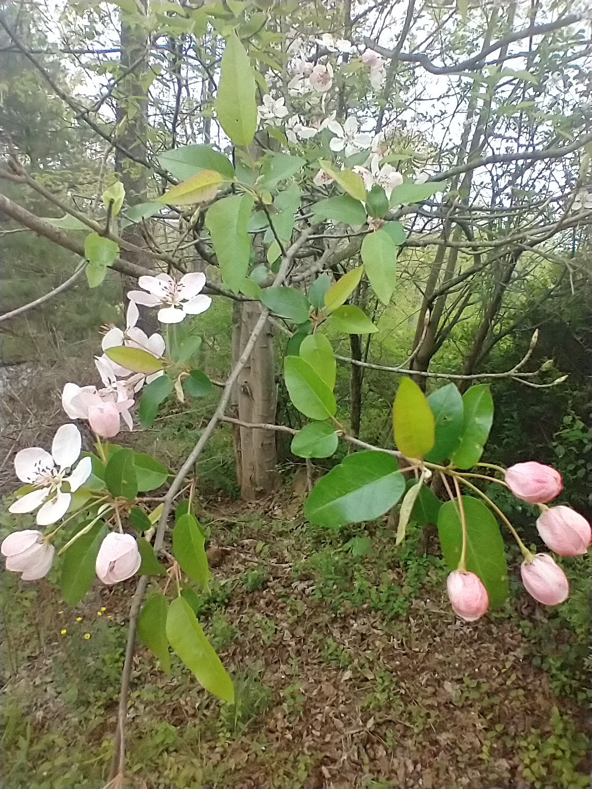 Late April of an on-again off-again warm wet spring with relatively minimal late frosts, the lightest in years, though some damage to blossoms and leaves.