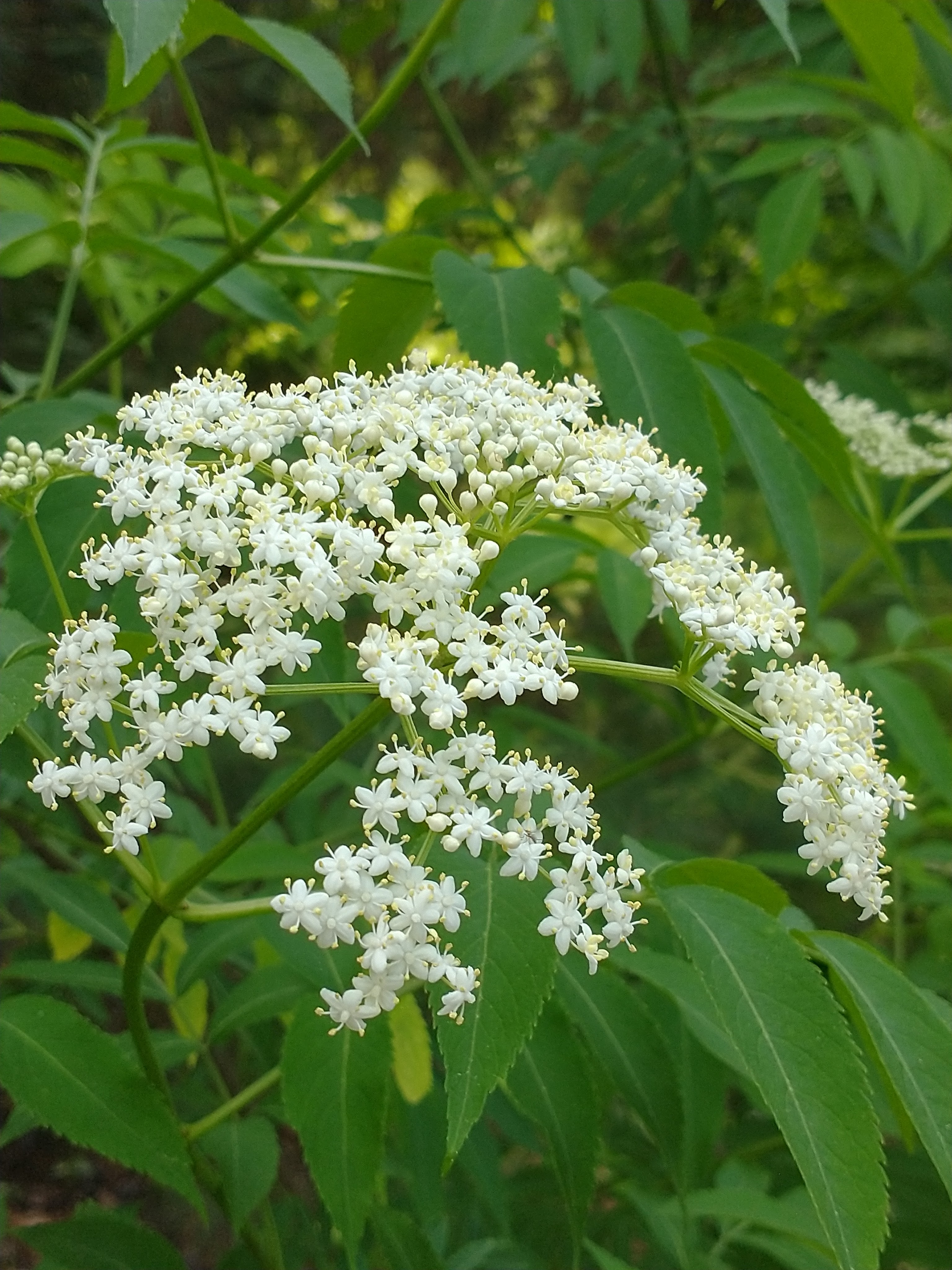Most persimmon blossoms opening now, slightly ahead of most black elderberry blossoms: