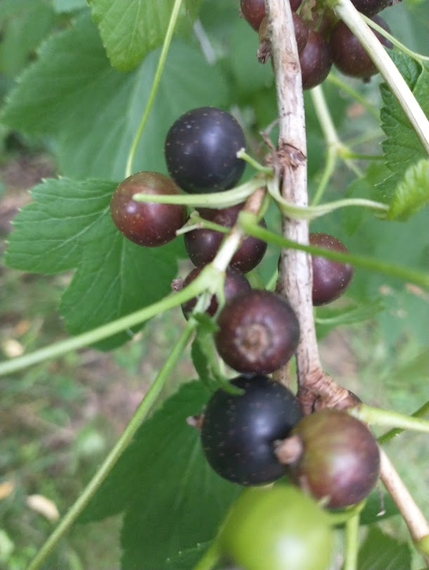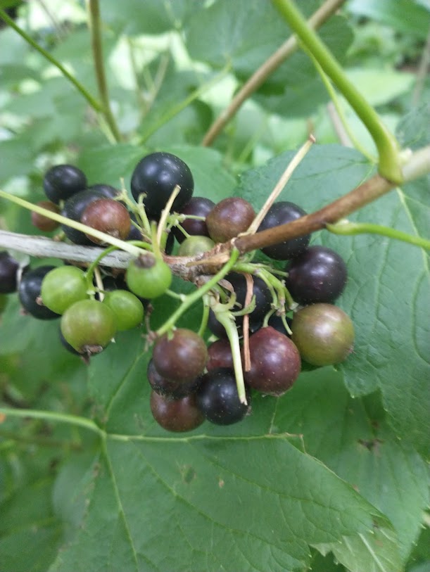 Black currants are an easy growing, easy rooting fruit with a kick. Something like a small musky grape. Because of the musky smell of the leaves there can be some deer resistance.