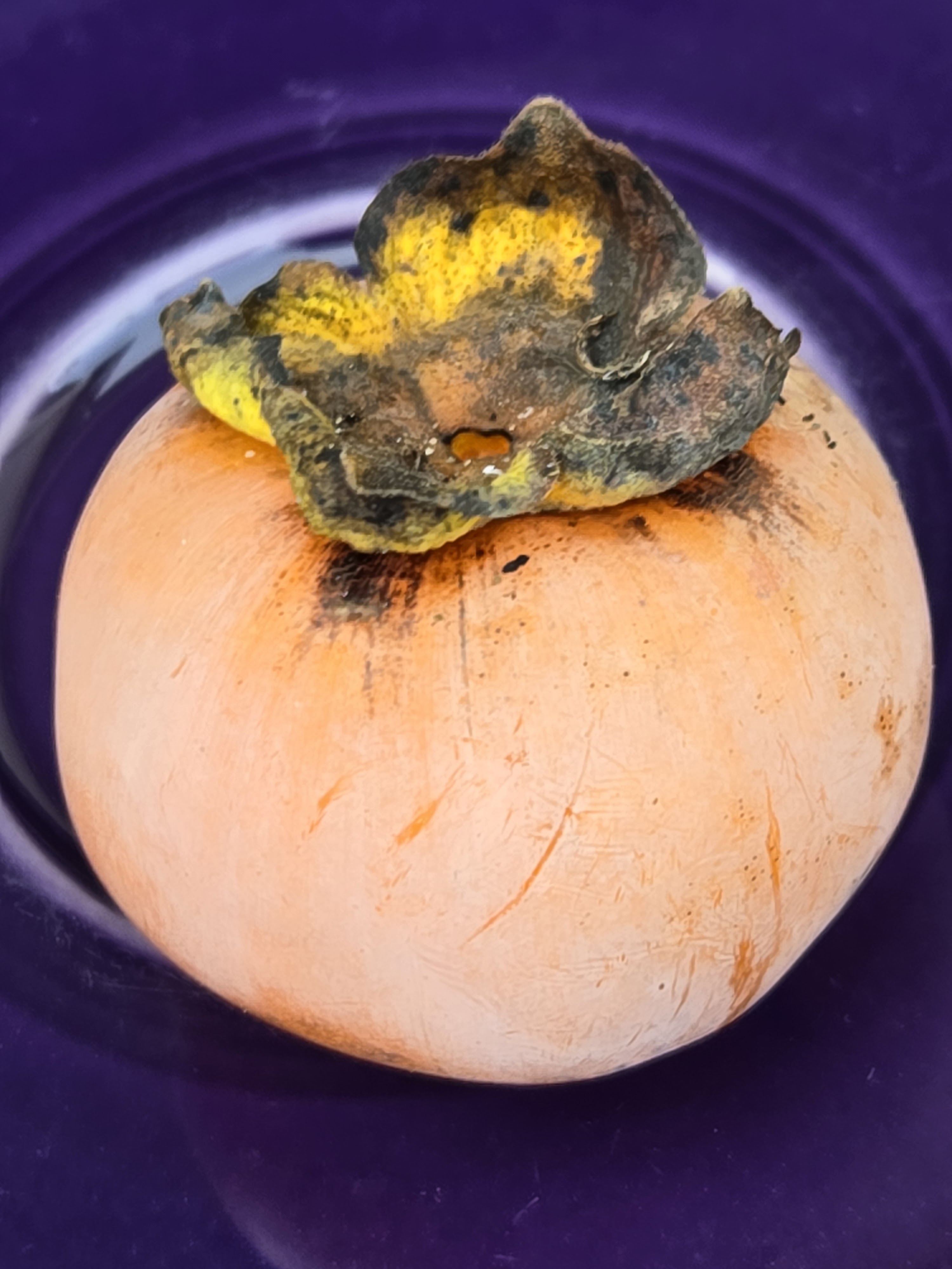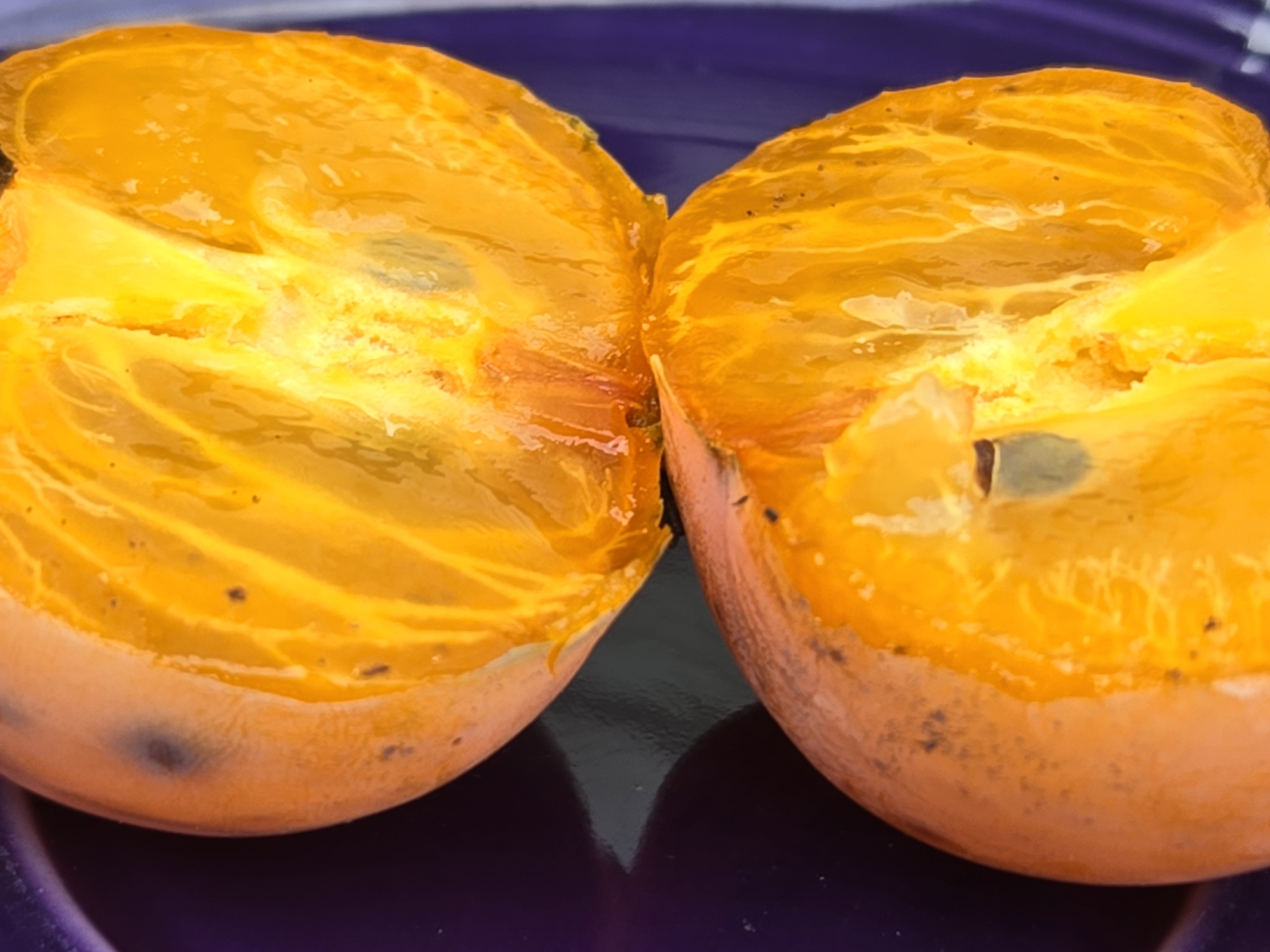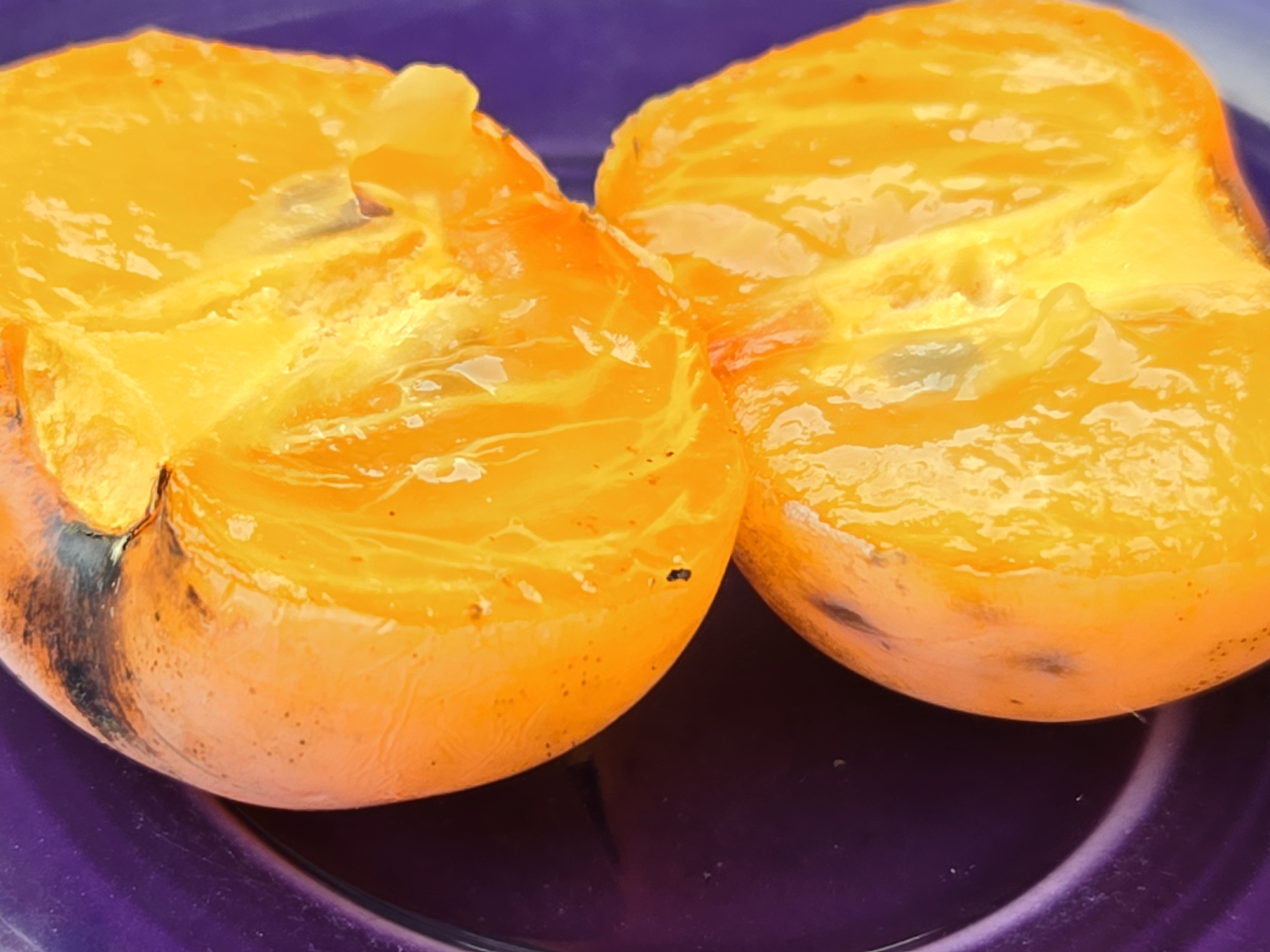 First persimmon of the season tasted like a mild apricot, with slippery firm jelly texture. Judged to be “weird.” Far from fully ripe. Yates variety.