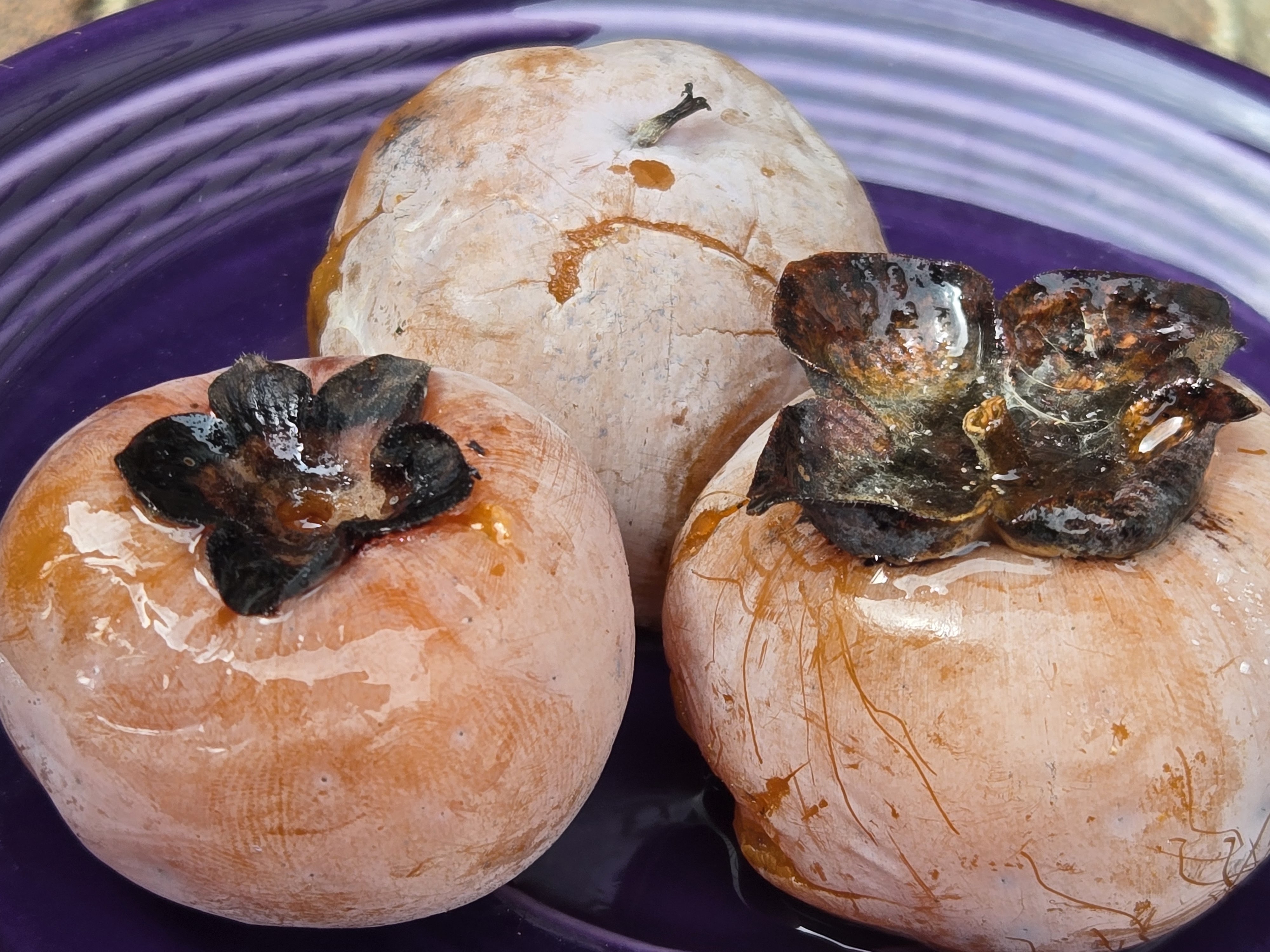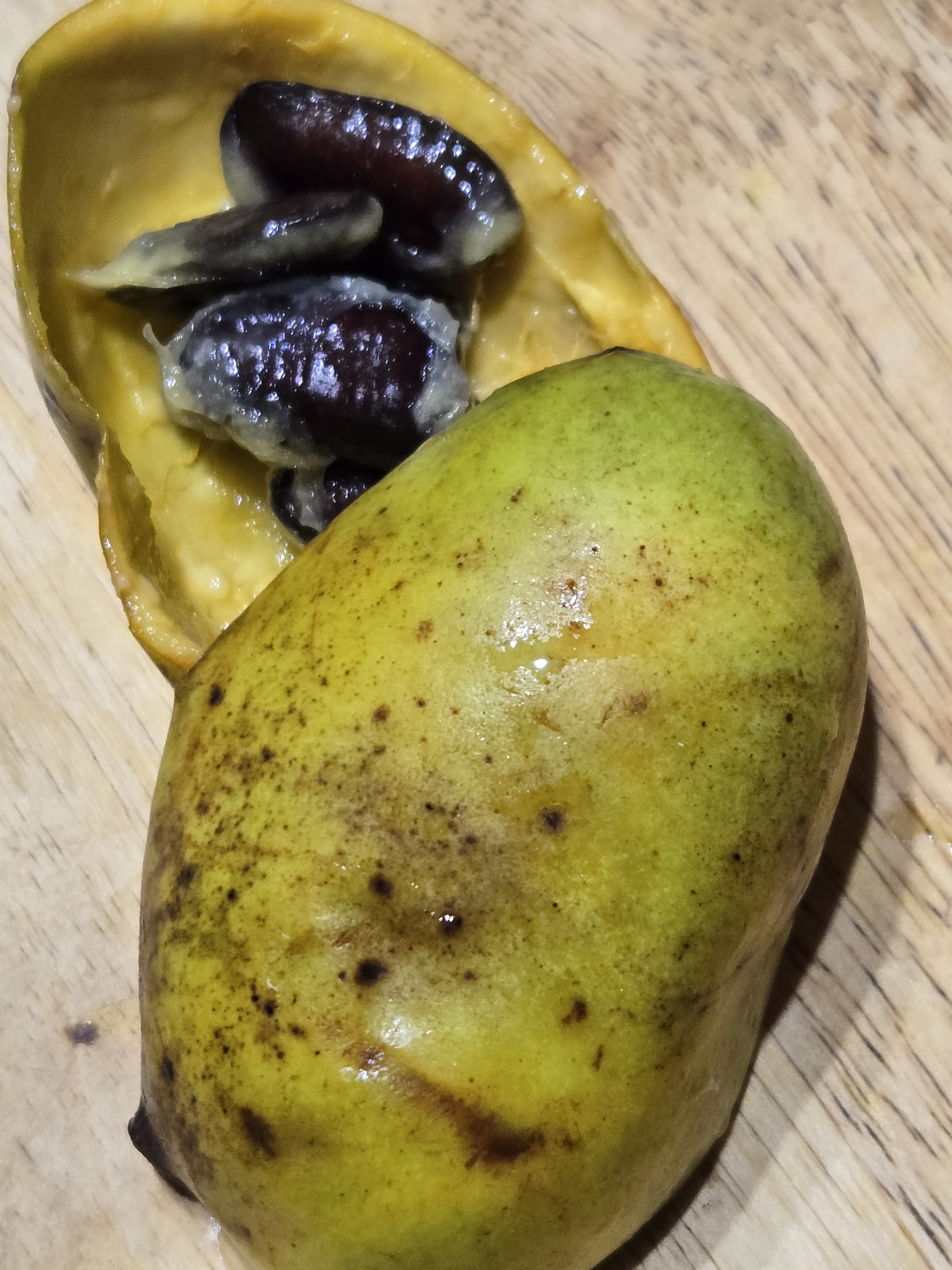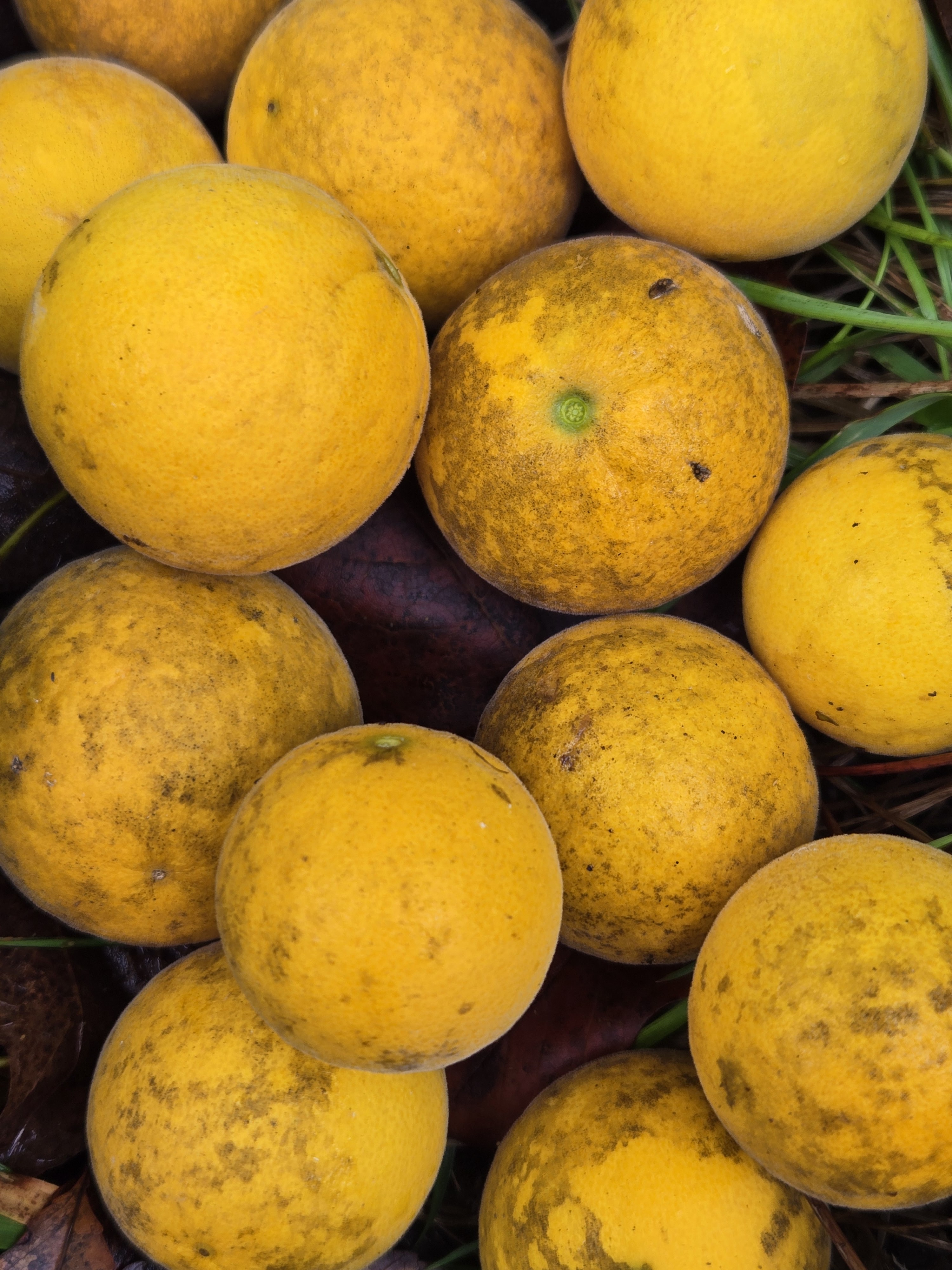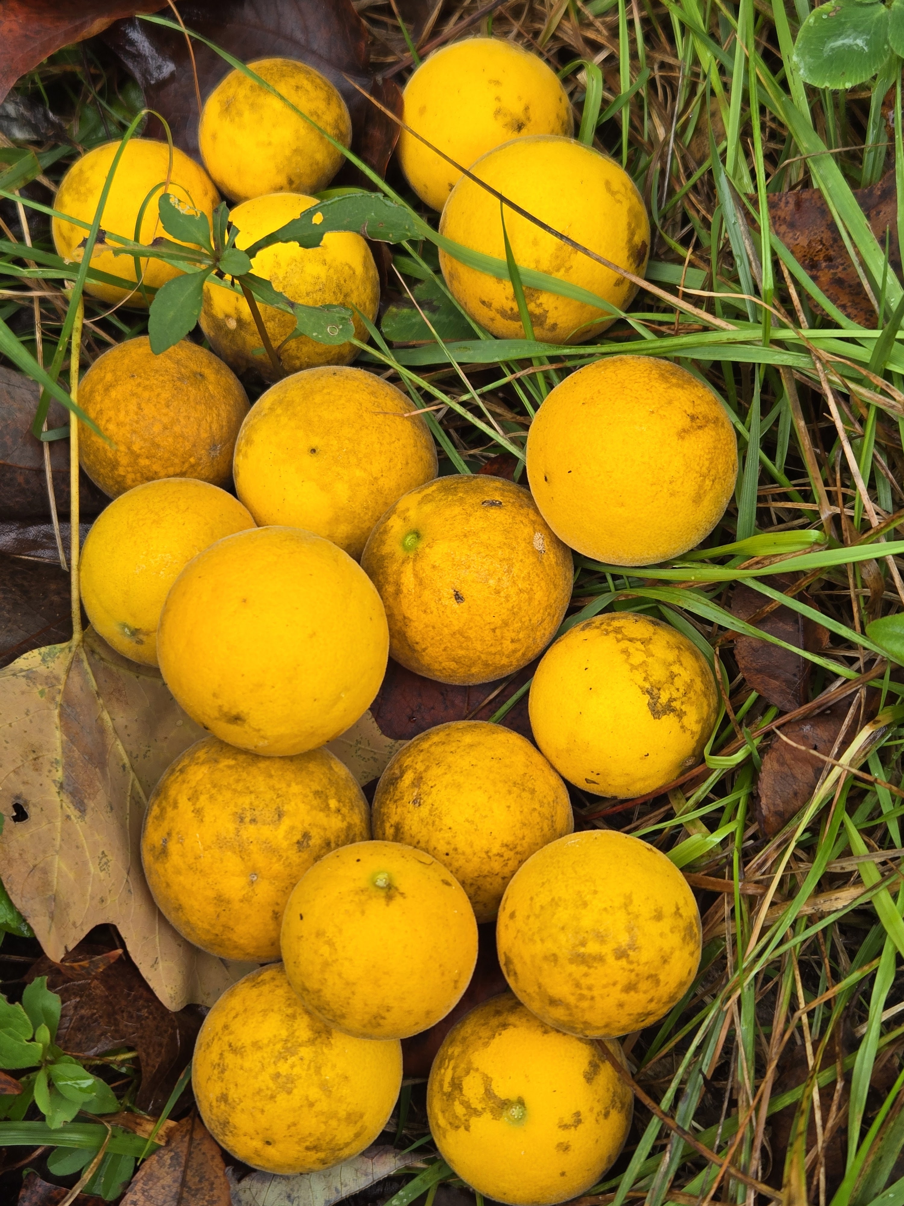 These three fruits pick themselves by dropping to the ground when ripe: persimmon, pawpaw, and poncirus trifoliata, aka, “Flying Dragon” hardy orange. The latter is considered to be invasive in the southeastern US.