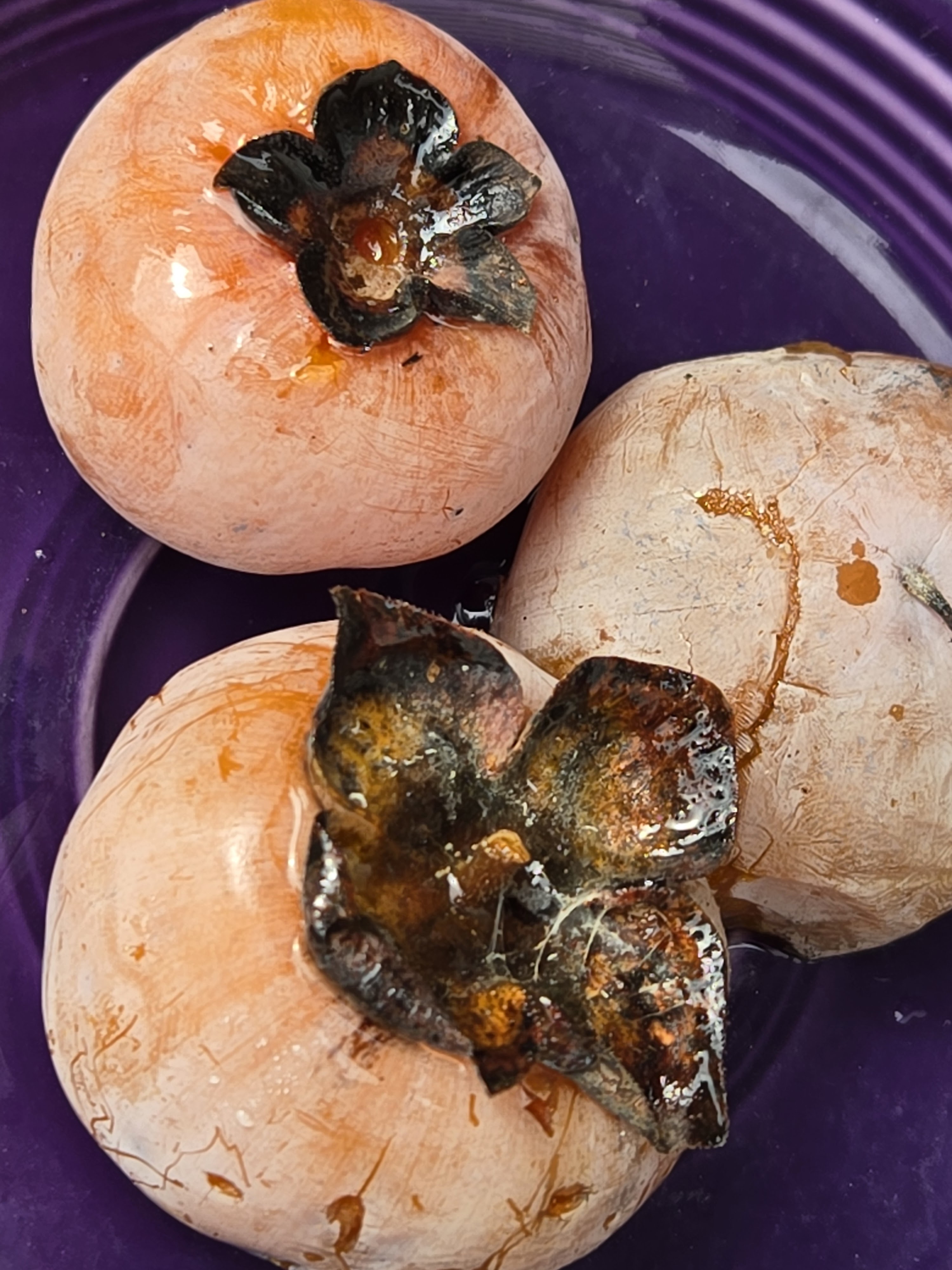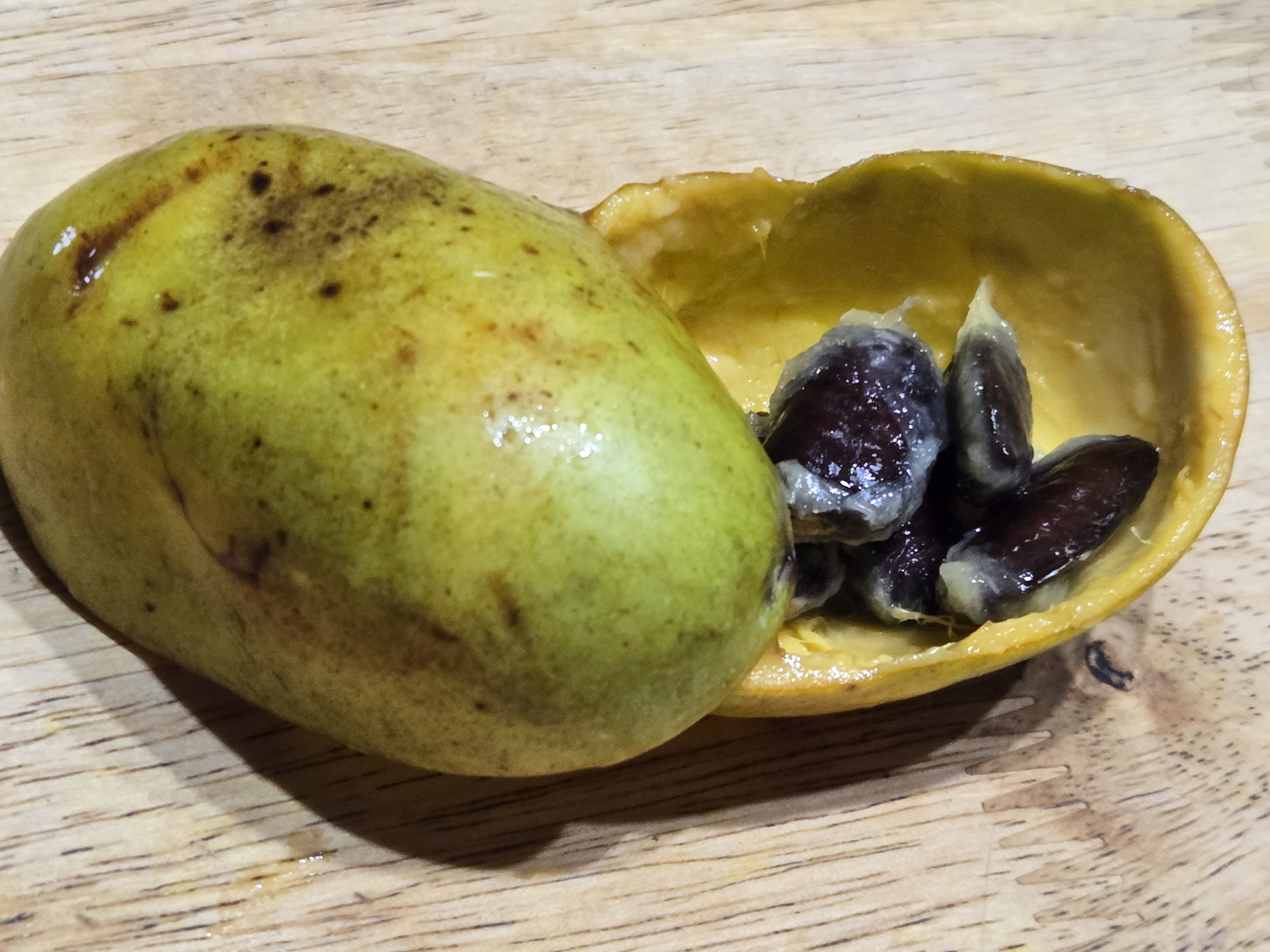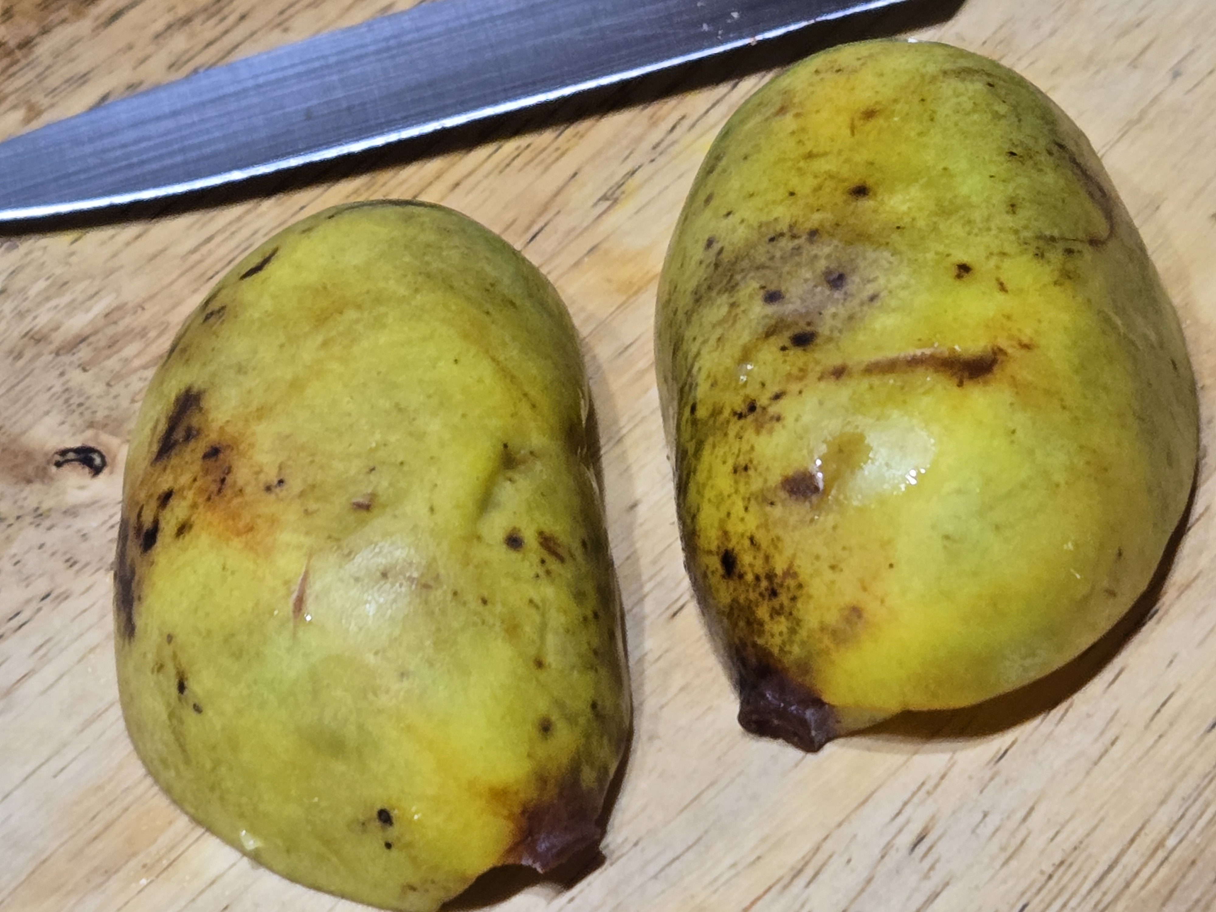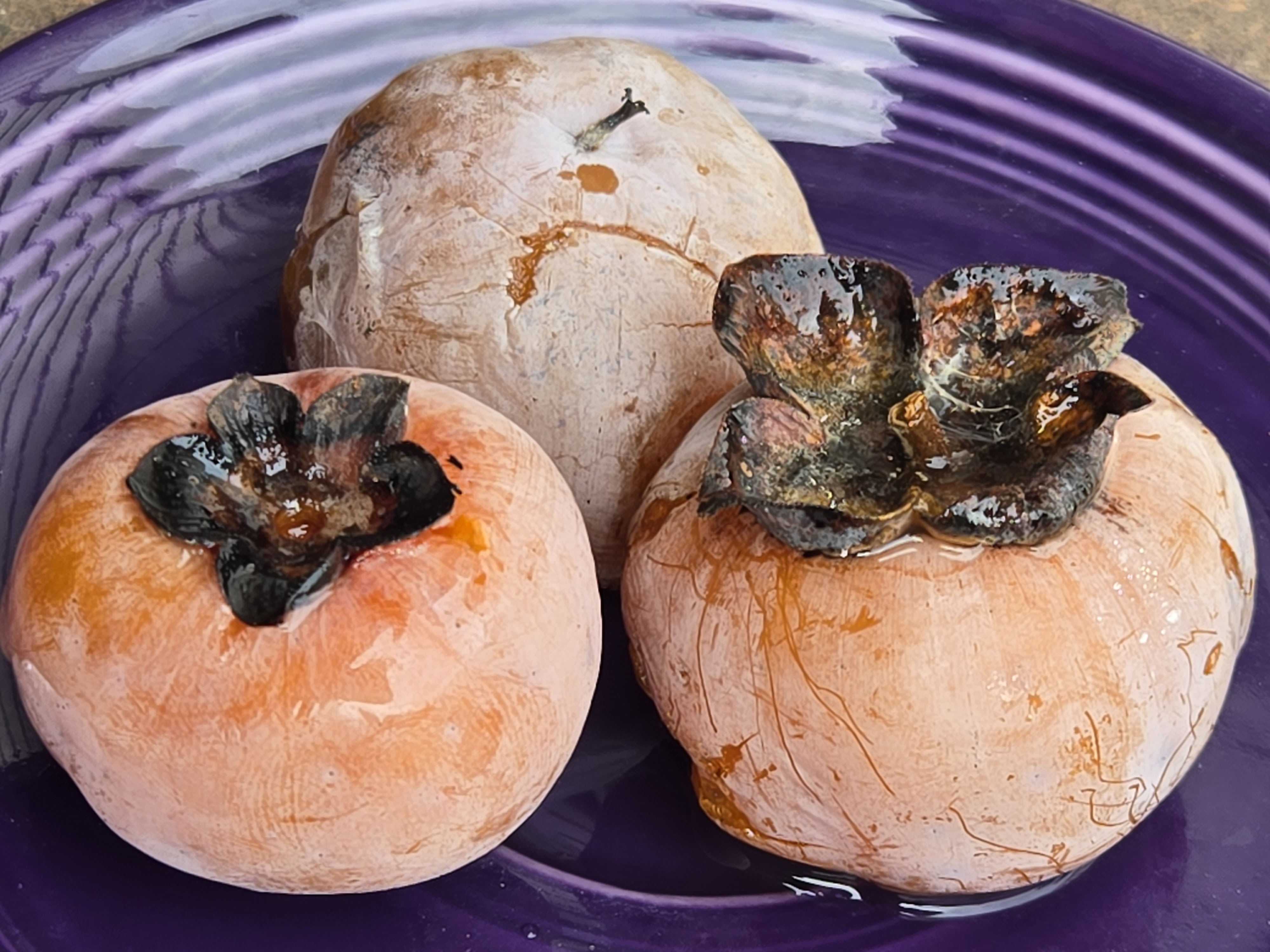 These three fruits pick themselves by dropping to the ground when ripe: persimmon, pawpaw, and poncirus trifoliata, aka, “Flying Dragon” hardy orange. The latter is considered to be invasive in the southeastern US.