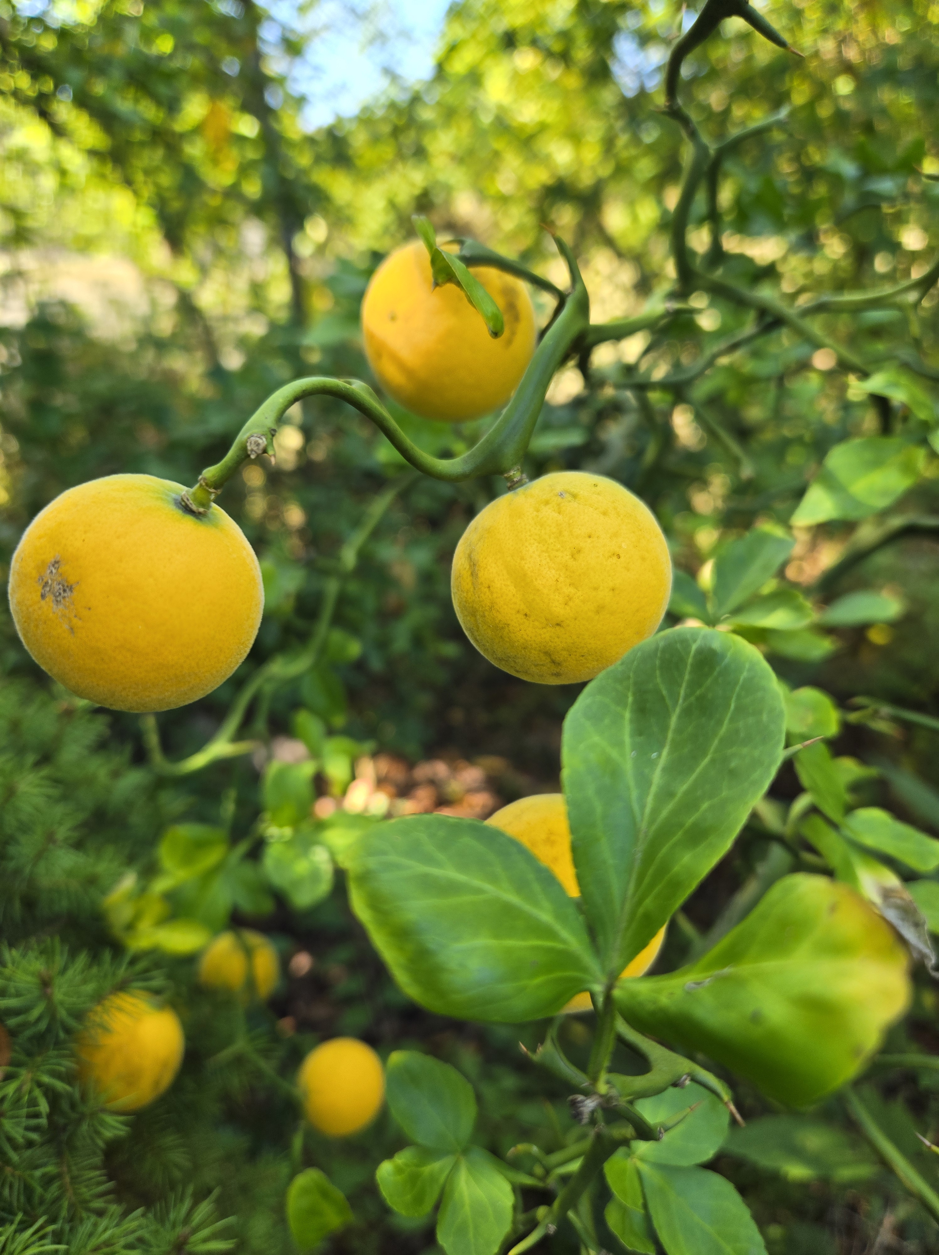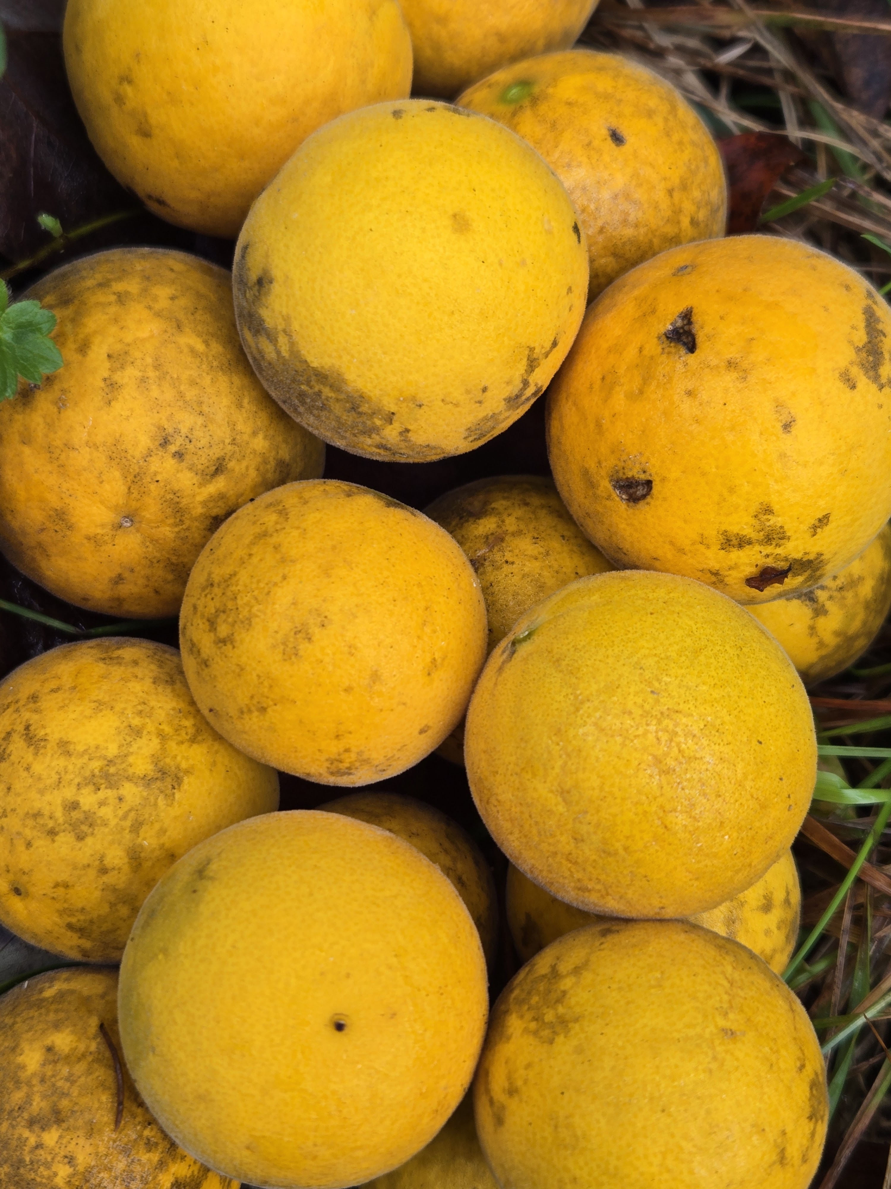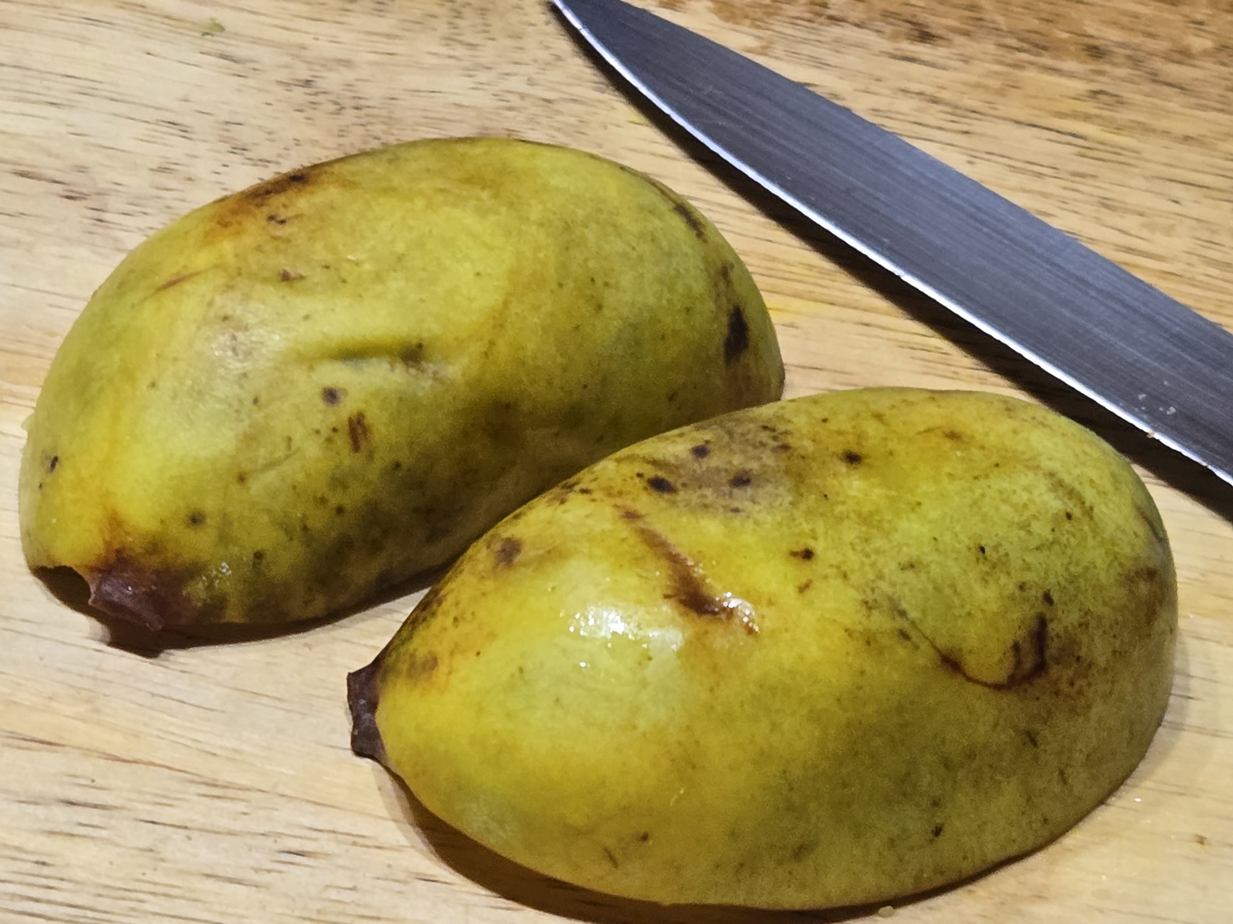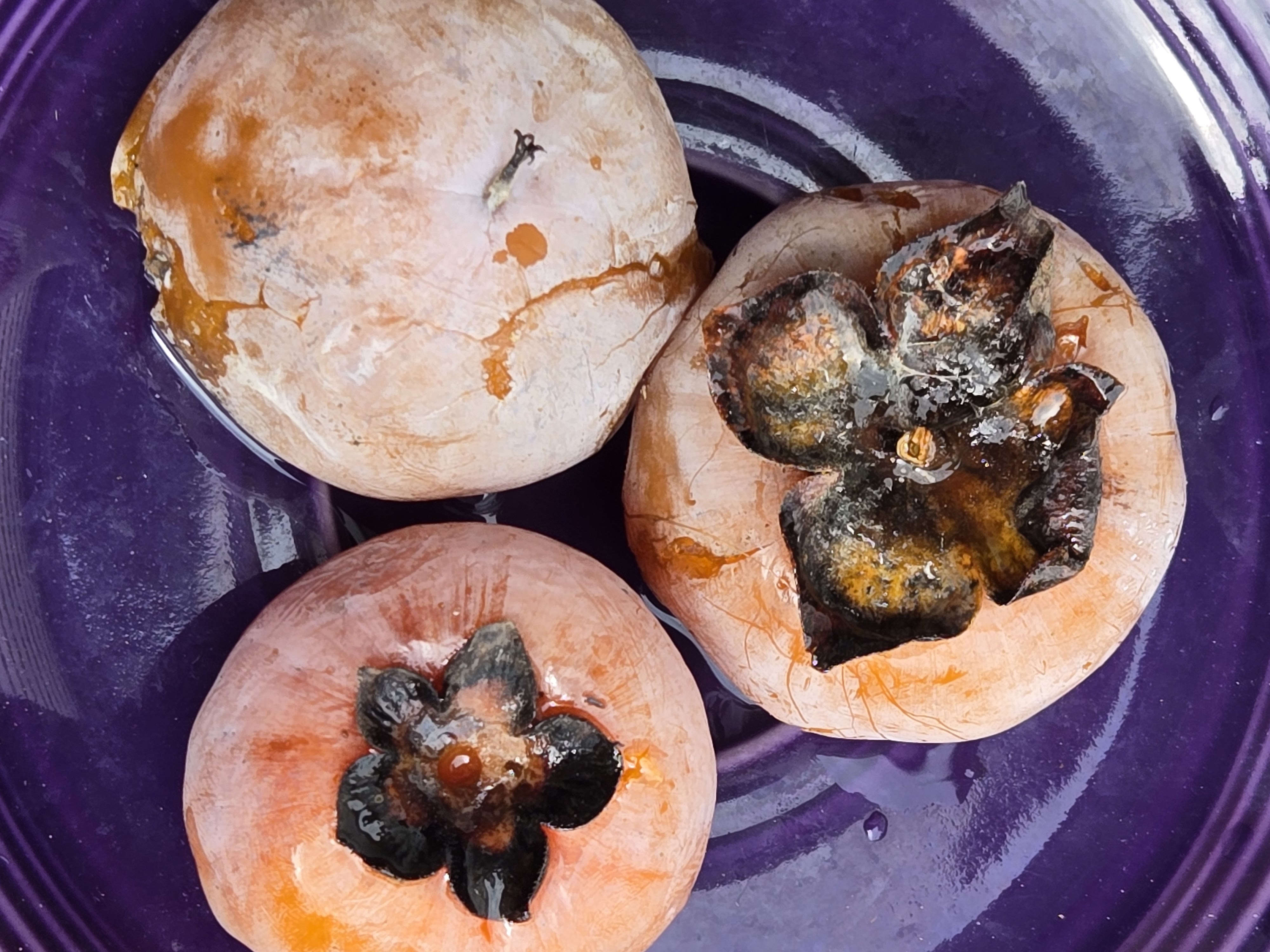 These three fruits pick themselves by dropping to the ground when ripe: persimmon, pawpaw, and poncirus trifoliata, aka, “Flying Dragon” hardy orange. The latter is considered to be invasive in the southeastern US.