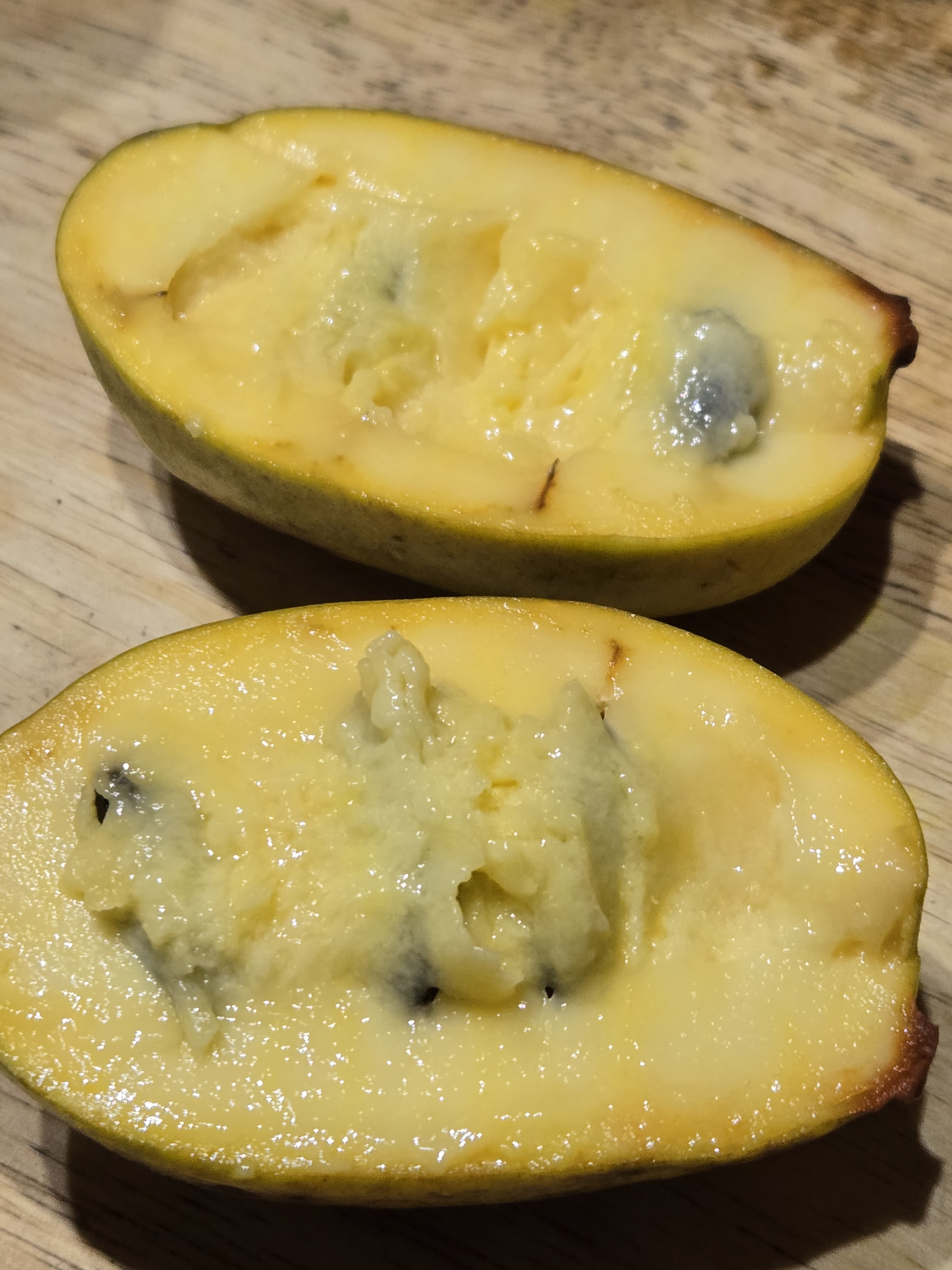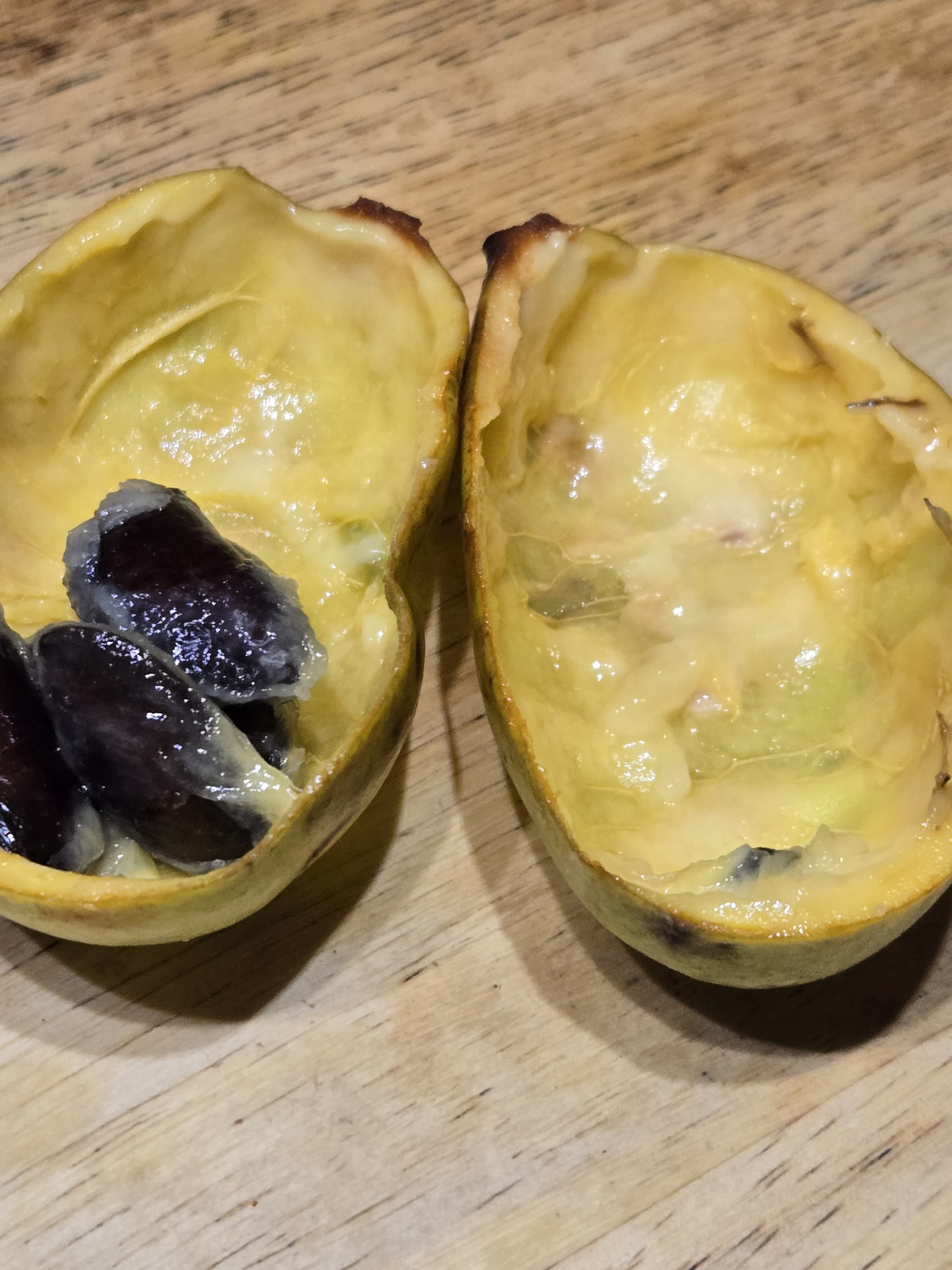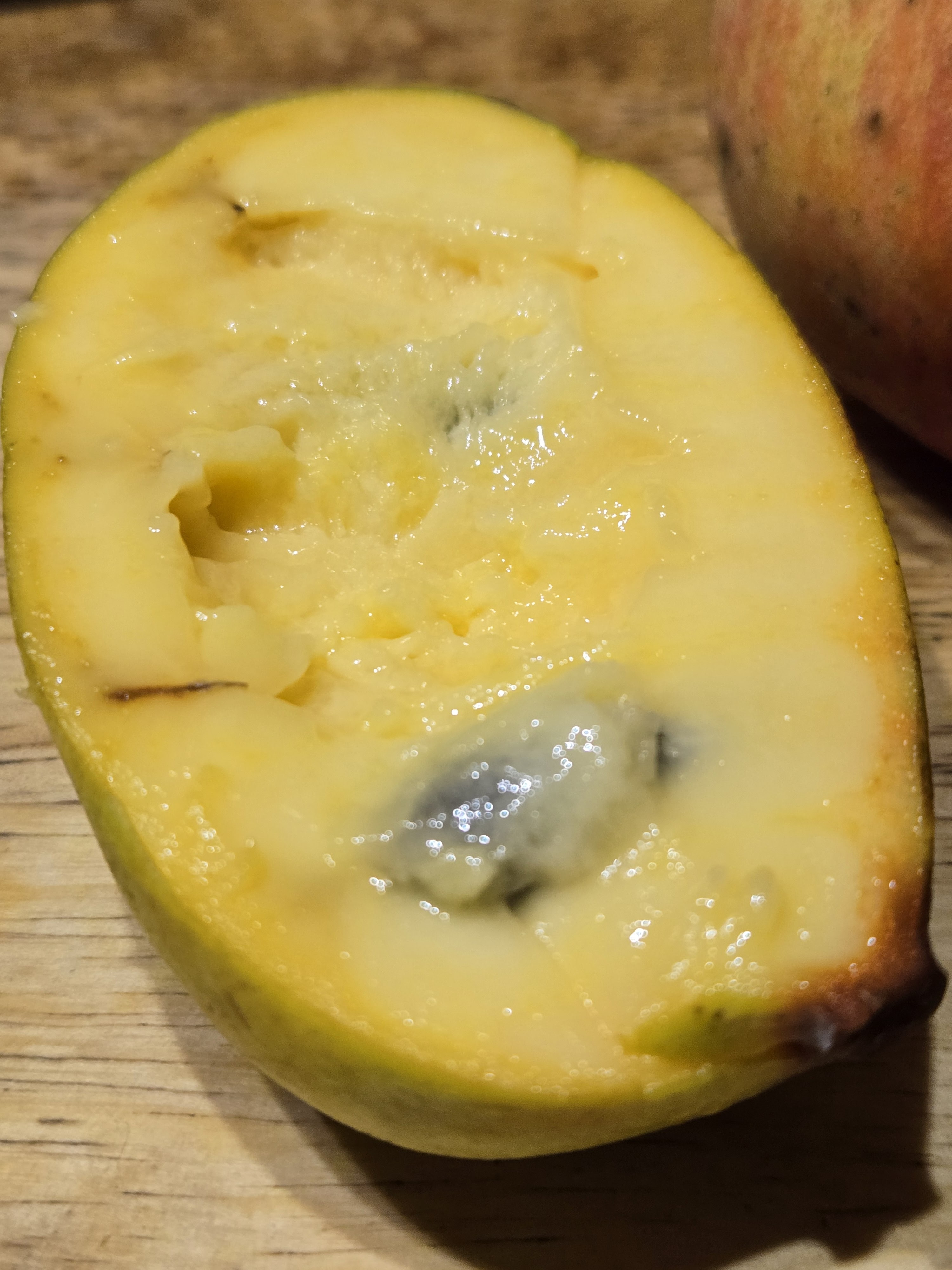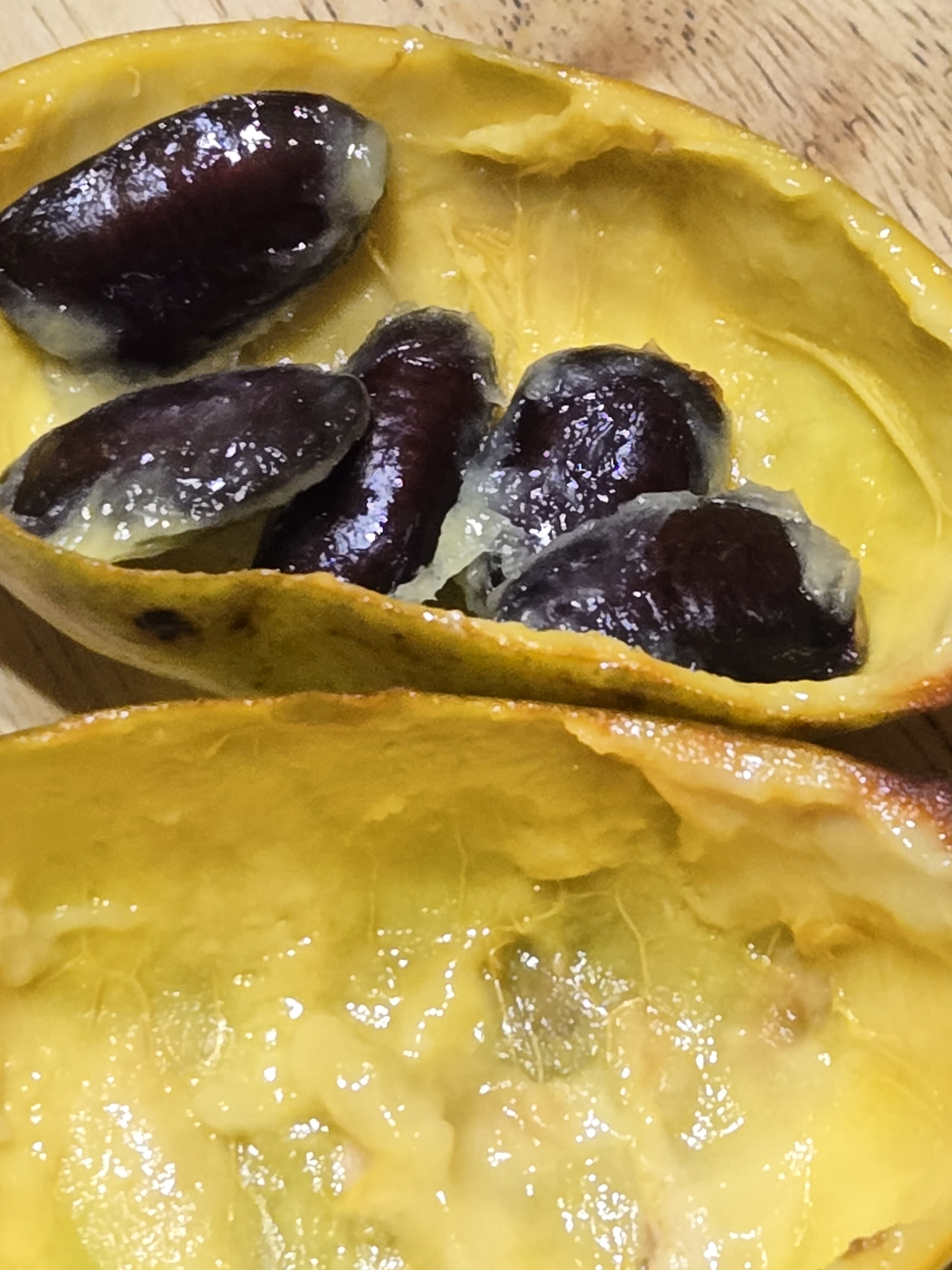 These three fruits pick themselves by dropping to the ground when ripe: persimmon, pawpaw, and poncirus trifoliata, aka, “Flying Dragon” hardy orange. The latter is considered to be invasive in the southeastern US.