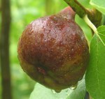 The trees of the fruit photoed below are grown in bark mulch and a small amount of peat moss or compost, with some lime and fertilizer, in pots and stored in garage in winter where the temperature remains at least slightly above freezing. The growing zone is 6b, West Virginia. The cultivars shown usually ripen their figs in July in the order listed. The dates below note the days of the photos, not a ripening span.